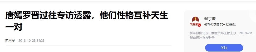 3.《唐嫣罗晋过往专访透露,他们性格互补天生一对》新京-10-28 14:25